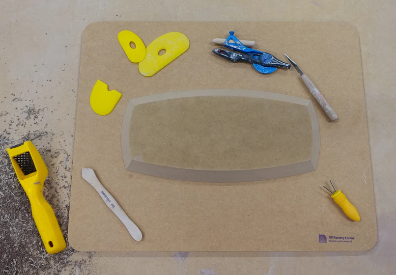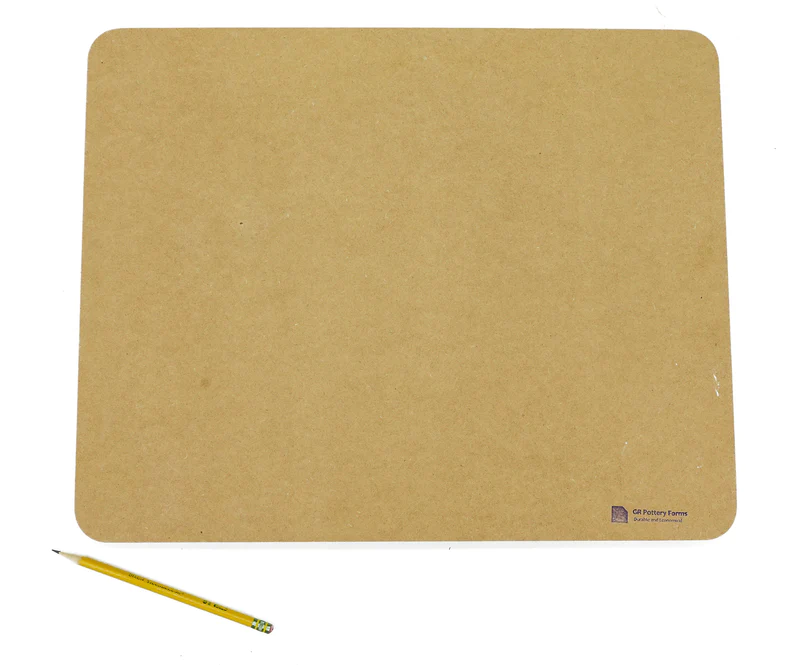 Our Studio Boards are light weight and are a 1/4” thick. Studio boards are to be used to assist when flipping work and as a workspace to roll out clay, coiling etc. Do not use for wedging or leaving the wet clay on the surface for long periods of time (over 30 minutes). They are not designed to be used for drying clay on. Because the boards are thin and made of wood, they cannot be left wet for too long or they could get soft or warp.