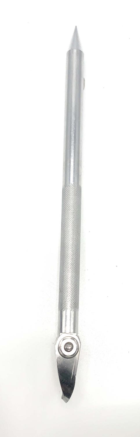 Carving Werkzeug in Form einer einstellbaren Klinge für Sgraffito Arbeiten. Det Aluminiumschaft ist 15 cm lang und die Klinen 0,5-1 cm breit.