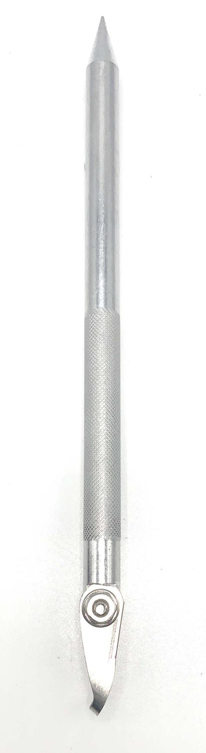 Carving Werkzeug in Form einer einstellbaren Klinge für Sgraffito Arbeiten. Det Aluminiumschaft ist 15 cm lang und die Klinen 0,5-1 cm breit.