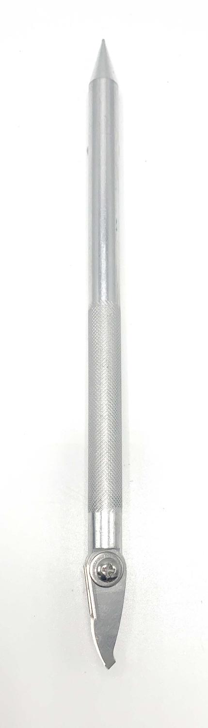 Carving Werkzeug in Form einer einstellbaren Klinge für Sgraffito Arbeiten. Det Aluminiumschaft ist 15 cm lang und die Klinen 0,5-1 cm breit.