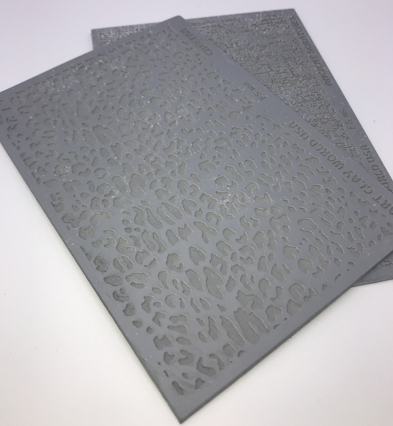 Grosser Stempel aus grauem Gummi, der immer wieder verwendet werden kann. Man benutzt ihn entweder für Glasuren und Farben oder für Abdrücke auf Formmassen. 10,5 x 14,8 cm.