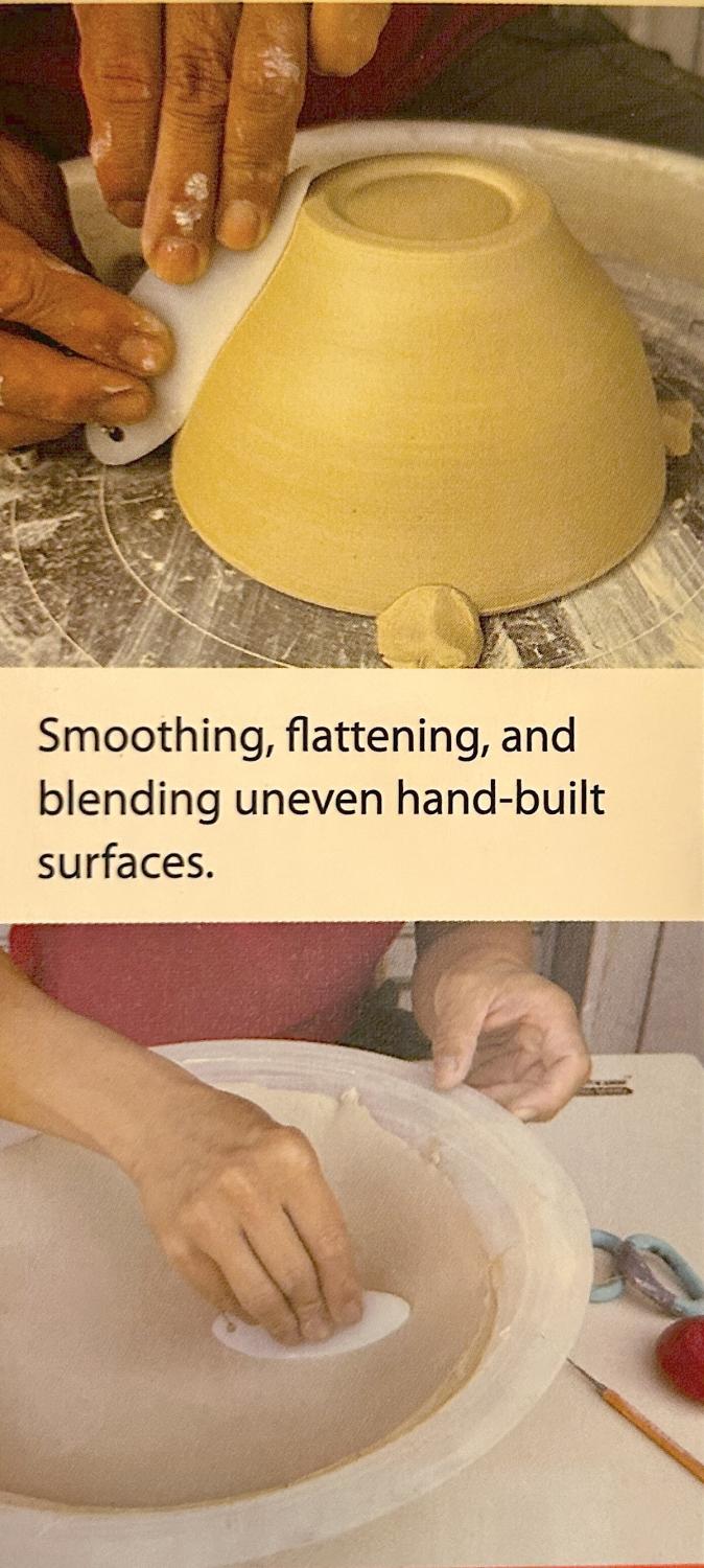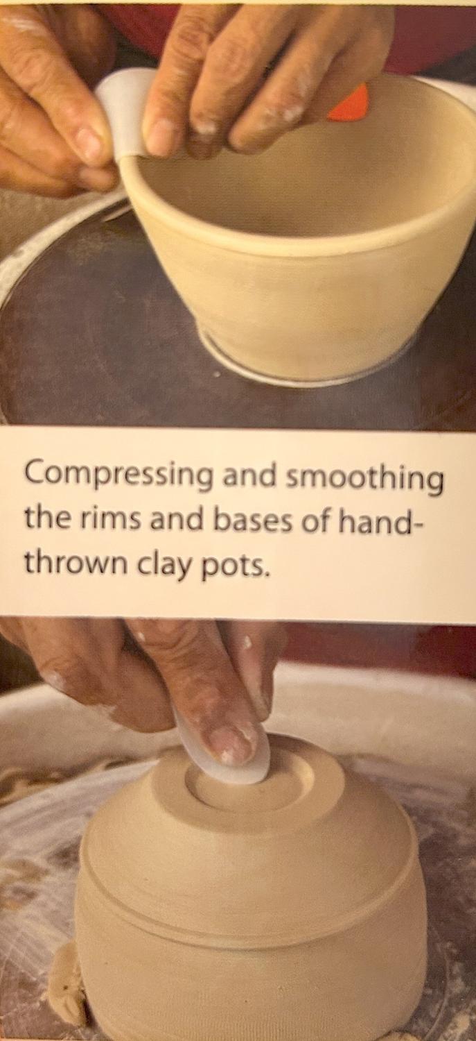 Der Clay Slicker von Xiem Tools ist ein vielseitiges Werkzeug, das zum Verdichten und Glätten der Kanten und Böden von gedrehten Keramikstücken verwendet wird, während diese noch auf der Drehscheibe liegen, um eine gleichmäßige und glatte Oberfläche zu gewährleisten. Er eignet sich auch ideal zum Glätten und Ebnen unebener, handgefertigter Oberflächen. Außerdem schwimmt es, wodurch es leicht zu finden ist und weniger Gefahr besteht, dass es im Putzeimer mit Schlamm versinkt. 11,5 x 3,7 cm.