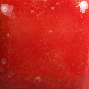 Kegel 06 Oxidation (1000°C): Firecracker ist eine opake, rote Basisglasur mit orangen, grünen und gelben Kristallen.