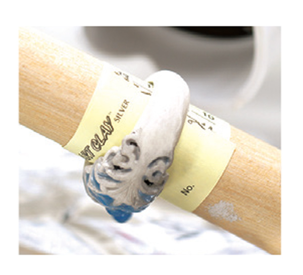Formwachs für das Erstellen von Hohlräumen in Schmuckstücken. Man formt das Wachs, dann legt man die Formmasse drum herum und lässt ein kleines Loch. Nach dem Trocknen der Formmasse, wird mit Hilfe eines Föhns das Wachs geschmolzen, so dass es aus dem Schmuck heraus fliesst. Dann kann der Schmuck gebrannt werden. 14 x 7 x 4 mm.