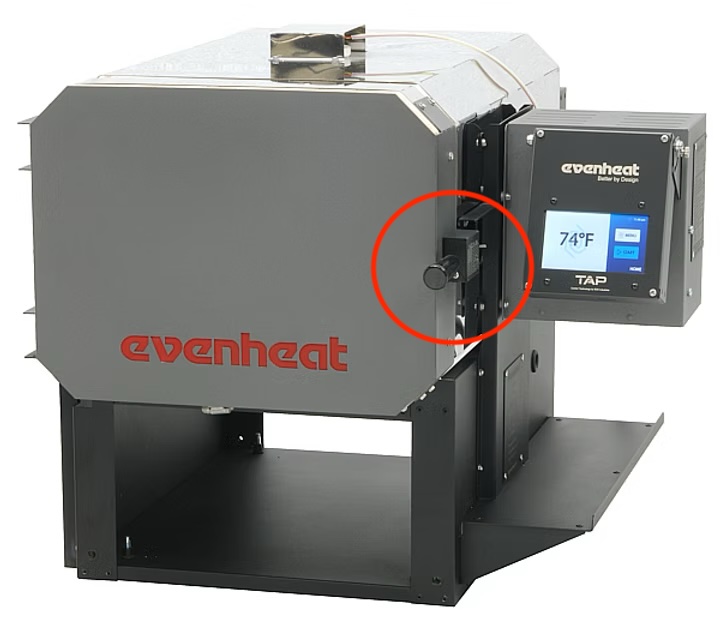 Handgriff von Evenheat für Messeröfen. Der Griff wird auf die vorhandene Schraube an der Tür des Ofens geschraubt. Ca. 6,5 x 2 cm