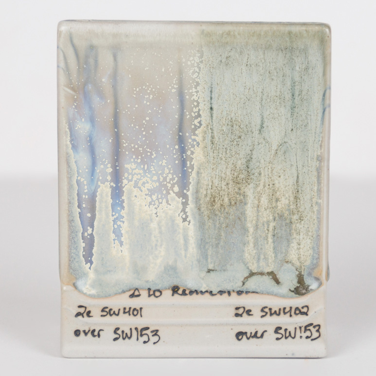 Kegel 6 Oxidation (1230°C): Indigo Rain ist eine matte weiße Glasur, die einen zweifarbigen lila und violetten Kristall enthält. Wenn der Kristall schmilzt, erscheint ein lila Kristall mit violetten Sprenkeln. Die Glasur hat eine weiche, subtile Schönheit.