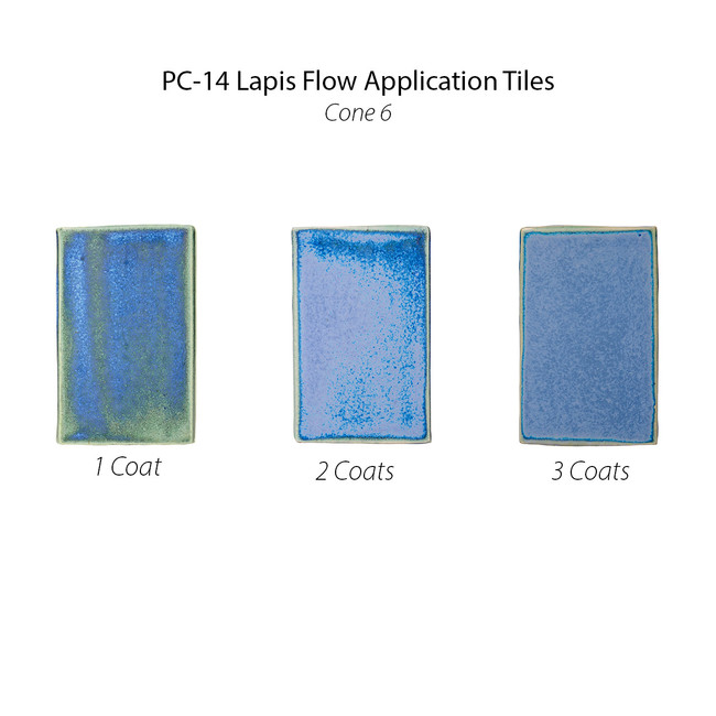 PC-14 Lapis Flow von Amaco ist eine fließende Glasur, deren Farbe von zartem Blau bis Violett reicht und die auf strukturierten Oberflächen einen grünen Schimmer zeigt