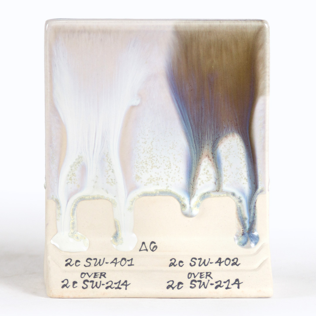 TIPP: Diese Glasur ist bei 3 Schichten stabil. Zusätzliche Schichten oder erhöhte Auftragsdicke können zu Bewegung führen. Wir empfehlen, unsere Mikroglasuren bei Kegel 6 Oxidation zu brennen, um die Kristallentwicklung zu erreichen. Micro Pearl erzielt ein stabiles, halbtransparentes, mattweißes Ergebnis mit einem perlmuttartigen Satin-Finish, wenn es bei Kegel 5 gebrannt wird. Kann in Oxidations- oder Reduktionsbränden verwendet werden. Die Ergebnisse können variieren. Die Wahl des Tonkörpers, die Auftragsdicke, der Brennprozess und die Temperatur beeinflussen das gebrannte Ergebnis. Testen Sie immer Ihre Anwendung auf Ihrem Tonkörper in Ihrer Ofenumgebung.
