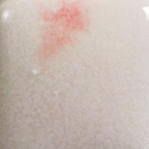 Kegel 06 Oxidation (1000°C): Peppermint Twist ist eine opake, rosa Basisglasur mit roten und weißen Kristallen, die schmelzen/aufblühen.