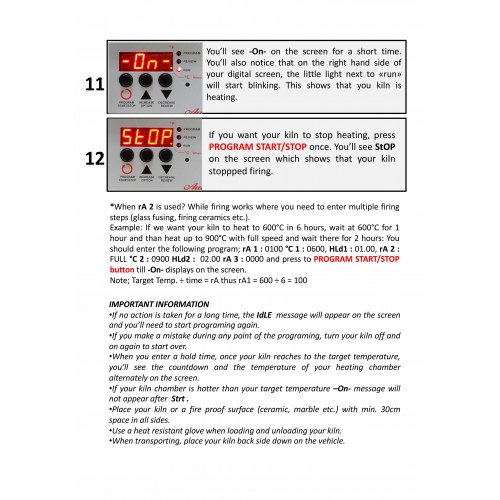 Prometheus PRO-1 PRG mit Fenster hat eine digitale Steuerung mit 9 Programmen. Jedes Programm hat 5 Brennstufen. Dieser Ofen verbraucht sehr wenig Strom (weniger als ein Föhn). Prometheus Pro-1 ist ein vielseitiger Ofen für den Profi, sowie den Amateur. Er ist geeignet in allen kreativen Bereichen, wo das Brennen von Gegestäneden benötigt wird, wie z.B. Metall-Ton, Keramik, Glas, Abziehbilder, usw. Er ist nicht schwer und eignet sich mitzunehmen wo immer man ihn benötigt. Die Tür ist gut isoliert und der Griff aus Holz und wird somit nicht warm. 3,2 Ampere, 700 W, max Temp. 1000º C. Aussenmass: 22,5 cm x 22 cm x 28 cm. Brennkammer: B 11,5 cm x T 13 cm x H 7 cm, Volumen ca 1 Liter. Gewicht 5,7 Kg. 2 Jahre Garantie.