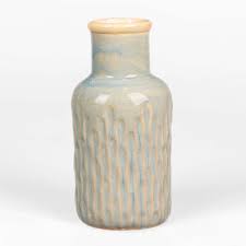 Kegel 6 Oxidation (1240 °C): Die Farbe verändert sich zu einem halbtransparenten Hellbraun/Grau, das über Struktur bricht und sich mit leichter Variation sammelt. Erhöhte Fließfähigkeit. Oberflächenfehler möglich.