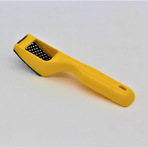 Eine Reibe mit glasfaserverstärktem Kunststoffgriff zum Hobeln, Feilen, Formen, Glätten, Abziehen und Raspeln von lederharter Keramik und fast allen Materialien. Die Reibeblätter können ohne Werkzeug ausgetauscht werden (KT-GR-SS). Gesamtlänge 185 mm, Blattlänge 65 mm.