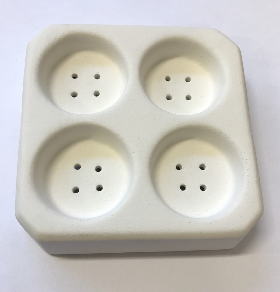 Glasform aus Keramik die in einen Schmuckofen passt. Bestreichen Sie die Form vor dem Brennen mit Trennmittel. Masse Figur: Durchm. 4 cm.