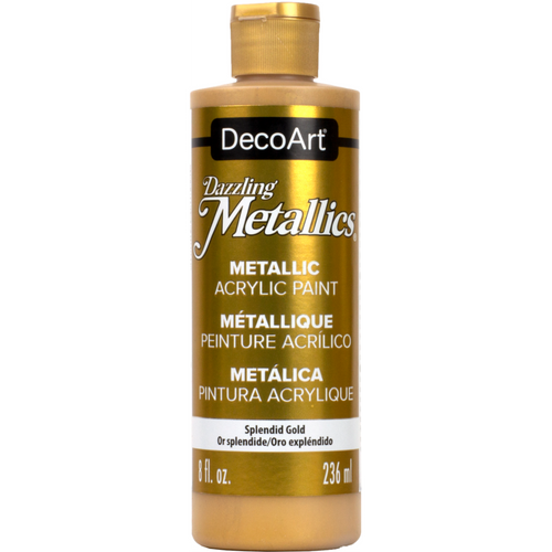 Dazzling Metallics ist eine permanente, vielseitig einsetzbare metallische Acrylfarbe, die Kunst-, Bastel- und Wohnprojekte mit einem eleganten Schimmer veredelt. Sie enthält helle Metallpartikel und bietet eine hervorragende, deckende Abdeckung.