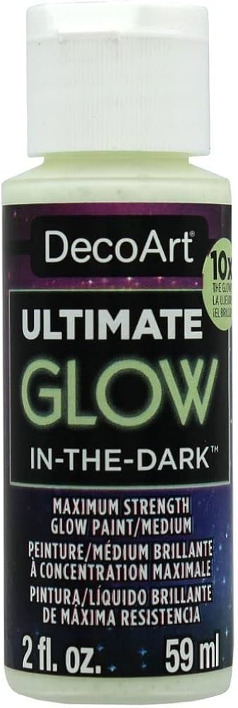 Eine hochwertige, erstklassige Leuchtfarbe, die deinen Werken im Dunkeln maximale Leuchtkraft verleiht. Das bemalte Objekt lädt sich mit Licht auf und leuchtet anschließend 10-mal länger als gewöhnliche nachleuchtende Farben. Haftet auf allen Arten von Oberflächen. 59 ml.