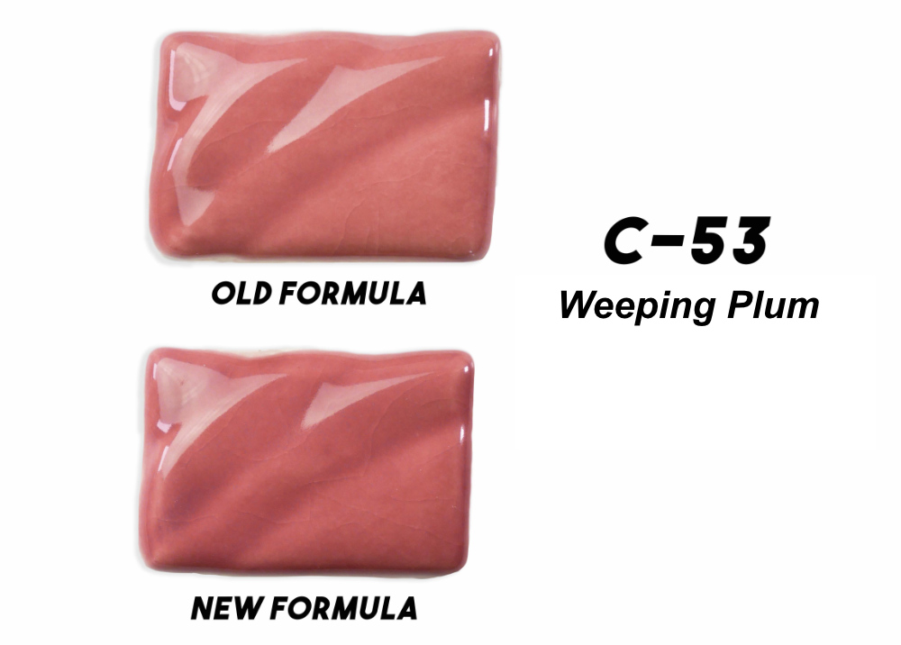 Amaco hat kürzlich die Rezeptur dieser Glasur geändert, was zu kleinen Farbabweichungen im Vergleich zu früheren Versionen führen kann. Siehe das Bild unten.