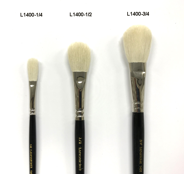 Herrlicher Ziegenhaarpinsel, der grosse Mengen Farbpigmente transportieren kann. Geeignet für Glasuren und Wasserfarben. Borstenlänge 30 mm.