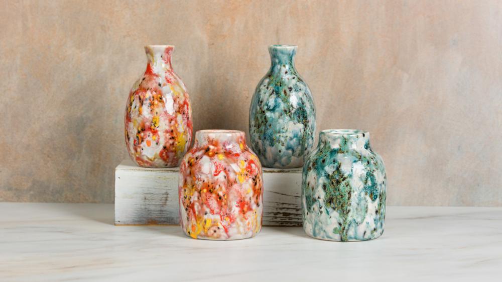 Crystal glazes are ready-mixed brushing glazes containing crystals and oxides to give colorful or metallic effects after firing. They are fired up to 1000°C, at higher temperatures the glaze may change its behavior and color (see information at each glaze). They do not need to be clear-glazed. Effect glazes are not suitable for food service.