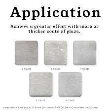 Apply with a soft brush to bisque with 3-4 heavy coats and fire to cone 5/6 (1210/1230°C)