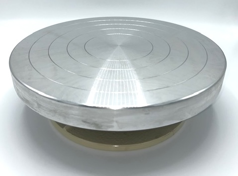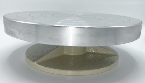 This banding Wheel is spinning and steady, for sculpting with clay, decorating leather-hard ceramics, glaze painting and decorating on wheel-thrown ceramics etc. With an aluminium plate and heavy steel foot it has a soft and smooth rotation of the spinning plate that has markings to be able to center the goods on the spinning plate. About 30 cm in diameter and 5,5 cm high.