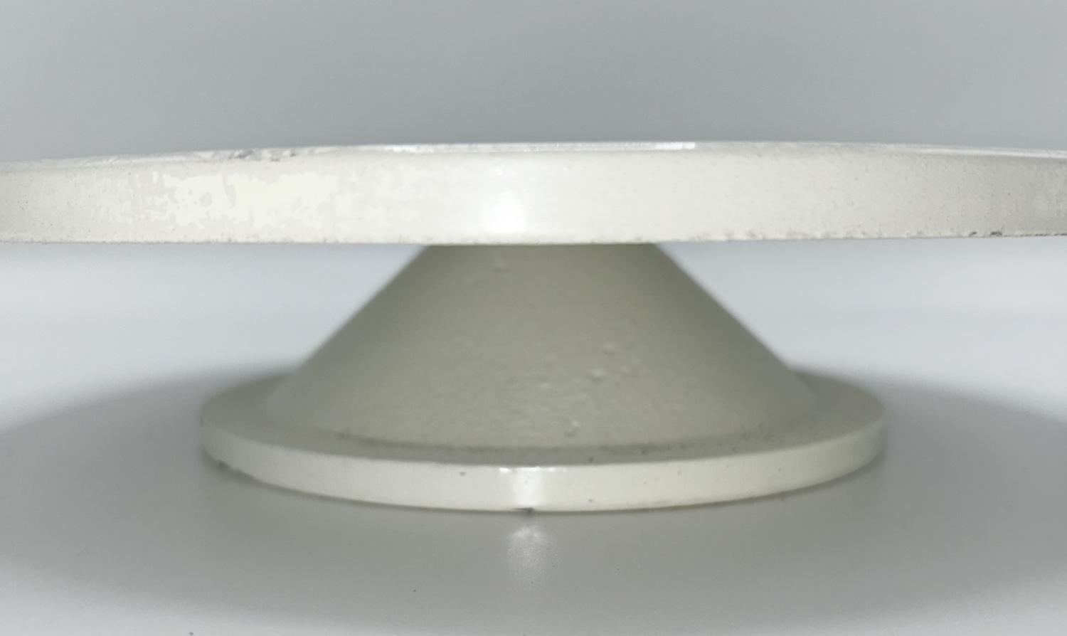 Banding wheel of steel with steel base. This is a very heavy duty banding wheel for decorating and sculpting with clay and ceramics. Approx. 25,5 cm I diameter and 5 cm high.