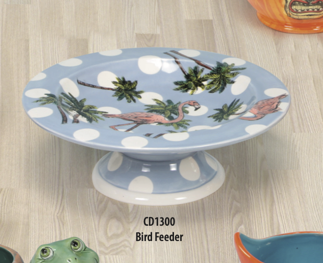 A plaster mold from Mayco for making ceramic objects. The birdbath consists of two molds—one for the base and one for the bowl—which are assembled after the clay has dried.