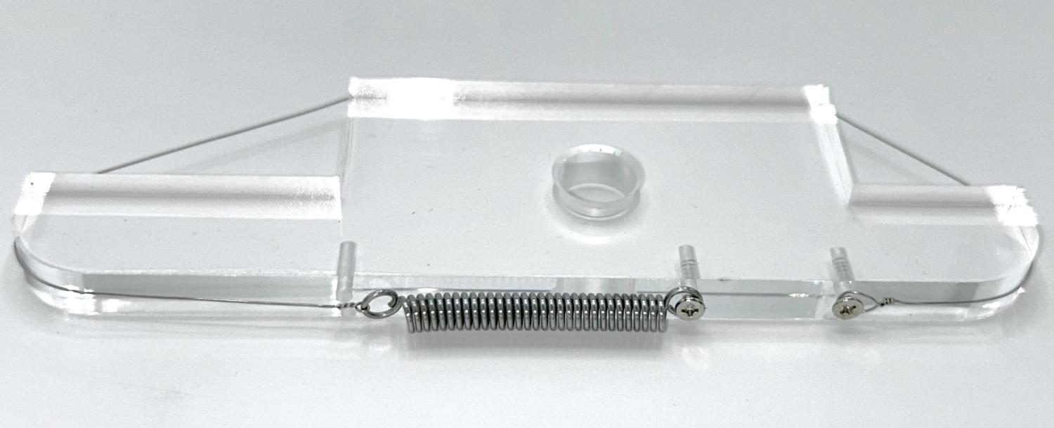 Handy acrylic tool used to cut clay like a bevel at different angles (45°, 30° and 60°). A durable wire sits on an acrylic handle. Two small screws on the side of the bevel allow the cutting wire to be adjusted. The bevel comes with a brown protective foil that can be removed to release the transparent acrylic. 15 x 5 cm.