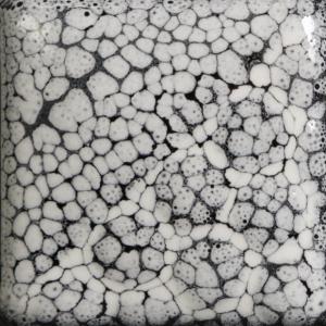 A beautiful textured glaze for earthenware that can be used to create beautiful effects. Depending on how many layers you apply with a brush, the texture will be stronger or weaker. Apply over a glaze. Can also be colored with a soft brush after application and once dry. Due to the crackling effect, it is not suitable for food. Fire at 999°C. At 1200°C (always test first), the glaze becomes shiny, the flakes become rounder, the crackling effect becomes less distinct, and it moves. 118 ml.