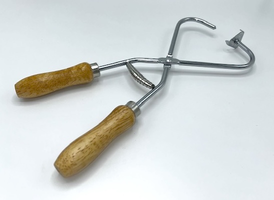Dipping tongs are used to hold ceramics to be dipped in dipping glaze. The tongs have sturdy wooden handles and a spring that helps to release the ceramic after dipping. Length of handles: 10 cm, size of holding handles: about 3.5 cm. The whole tongs are 35 cm
