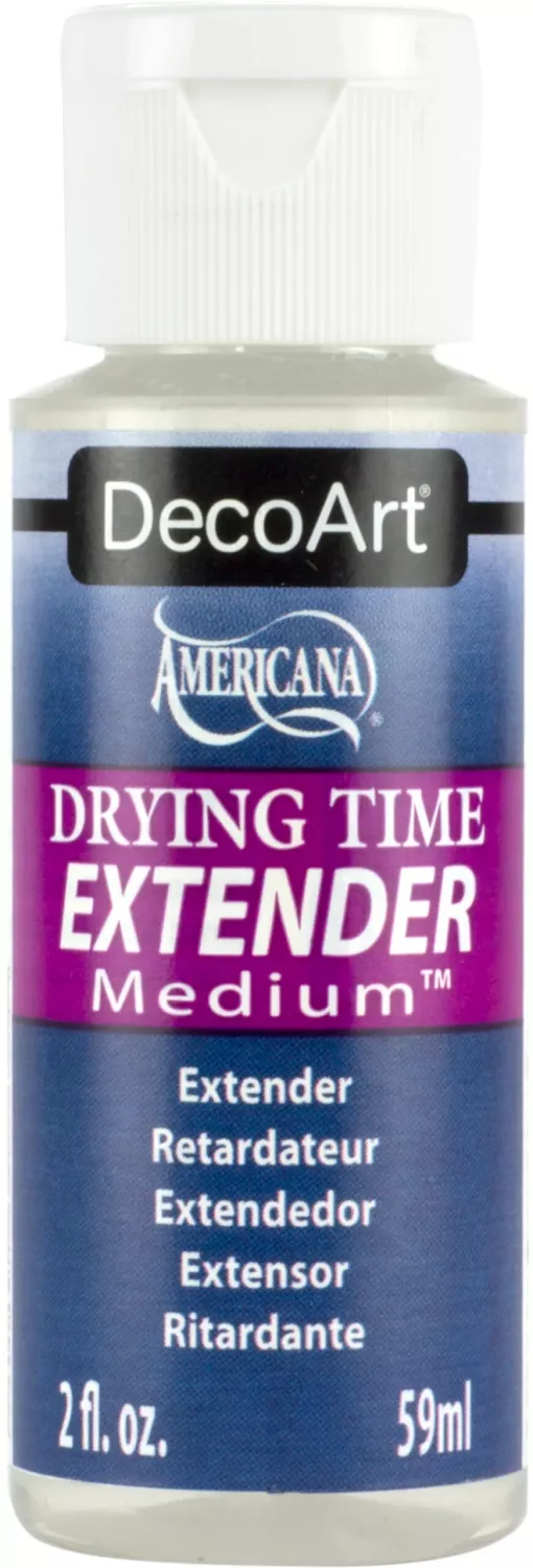 Drying Time Extender from DecoArt is an acrylic medium that, when mixed with any acrylic paint, slows the drying time and gives the paint properties similar to oil paint. Water-based. 59 ml.