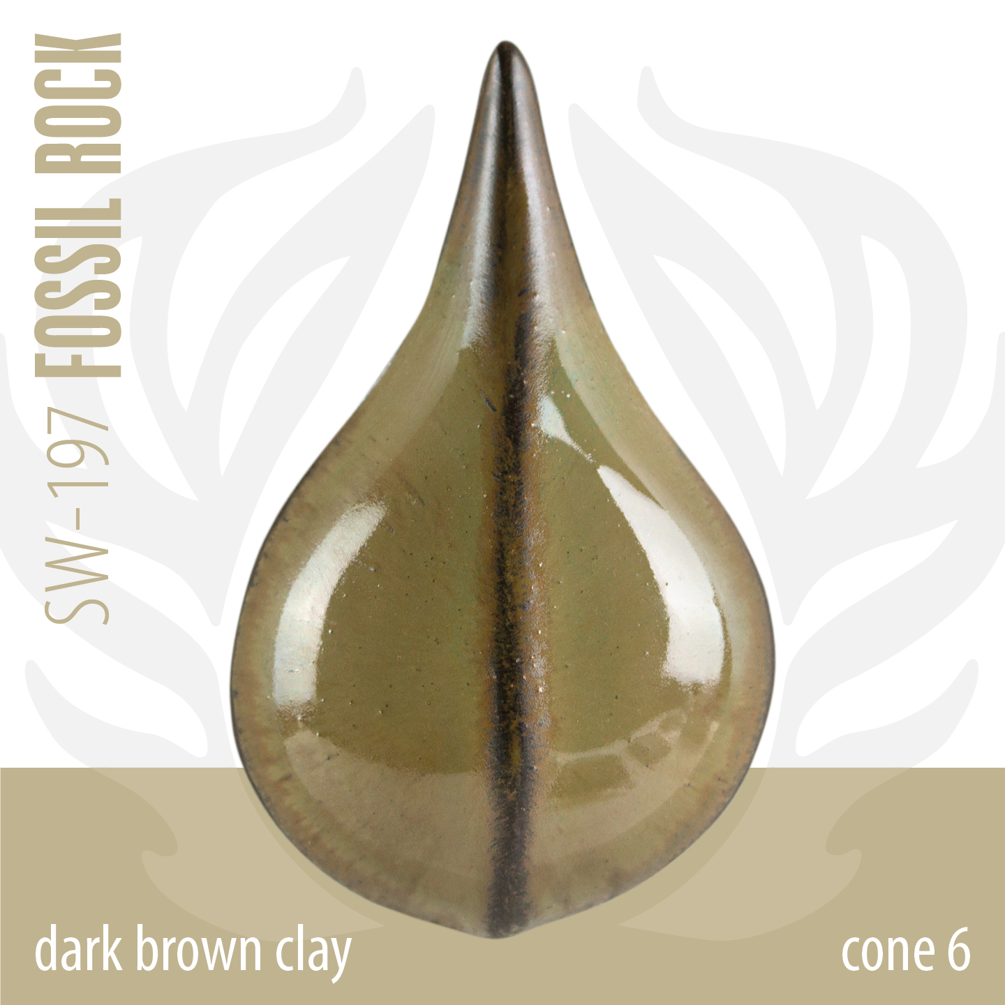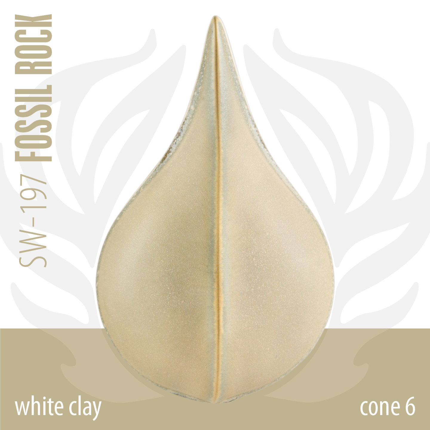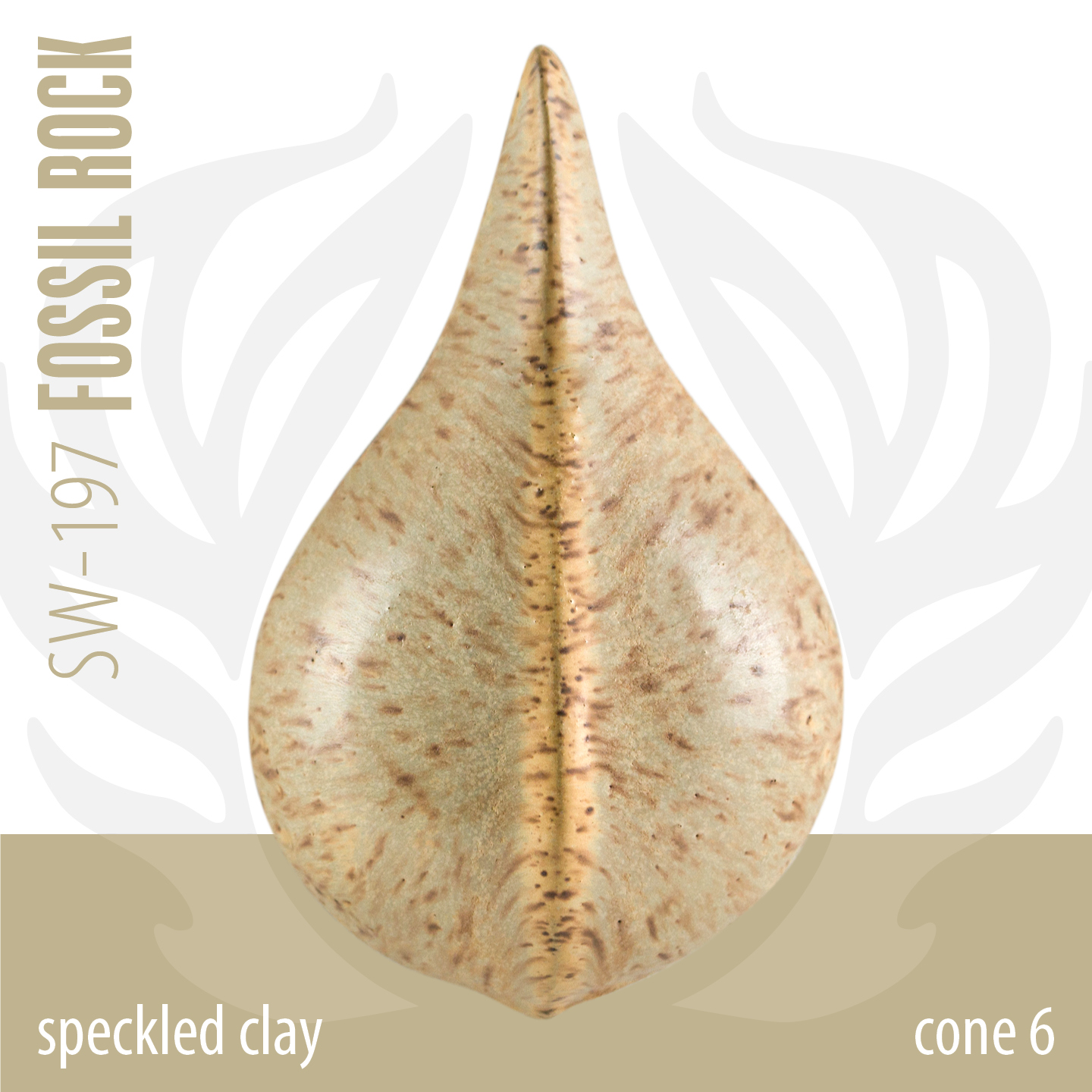 Cone 6 oxidation (1230°C): Geologically inspired with mottled earth tones, Fossil Rock is an opaque, tan, matte glaze that breaks over texture.