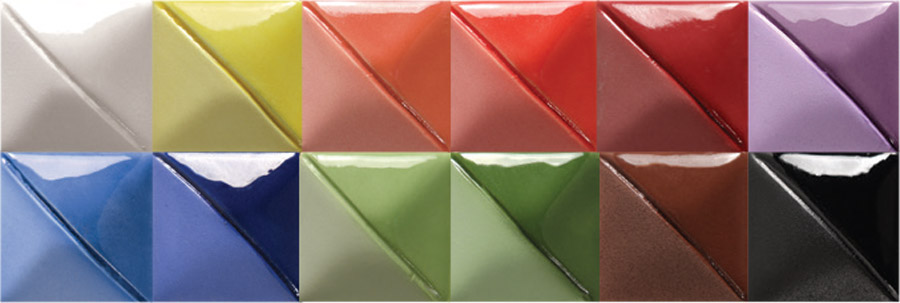 Fundamentals Set are underglazes from Mayco that should be shaken before use and applied to clay, leather hard, or bisque with a brush. Colors can be mixed with each other or combined with other glazes. They can be fired at 1044°C and 1207°C - 1280°C, with possible color and texture variations at temperatures above 1044°C (see the mid high brochure under DOCUMENTS). The examples are made on white clay and at 1044°C with NTBR clear glaze on top. Set with 12 different colors: UG1, 21, 31, 46, 50, 51, 68, 87, 97, 204, 206 and 208 in 59 ml. Test firing is recommended.