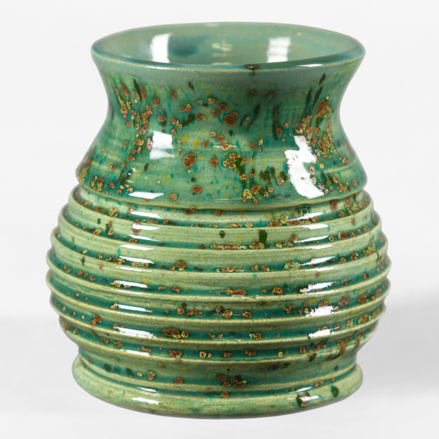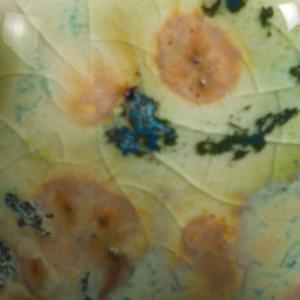 Herb Garden is a translucent base glaze with sage/brown and green crystals and a variety of yellow and blue/green specks.