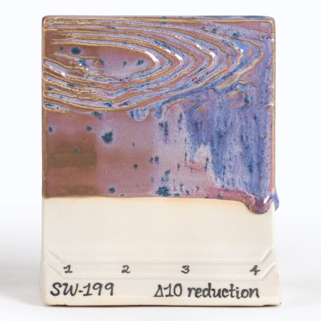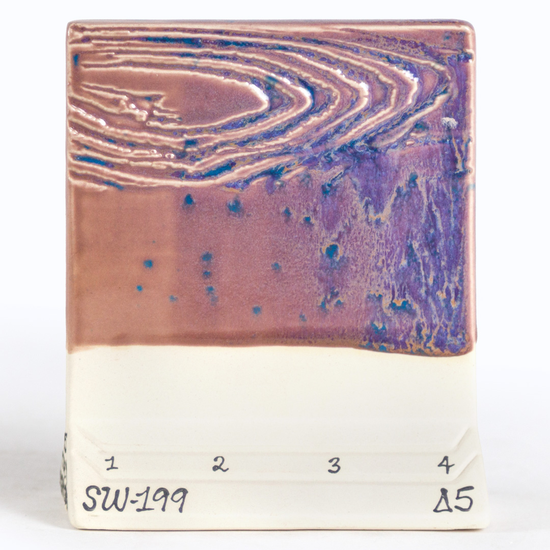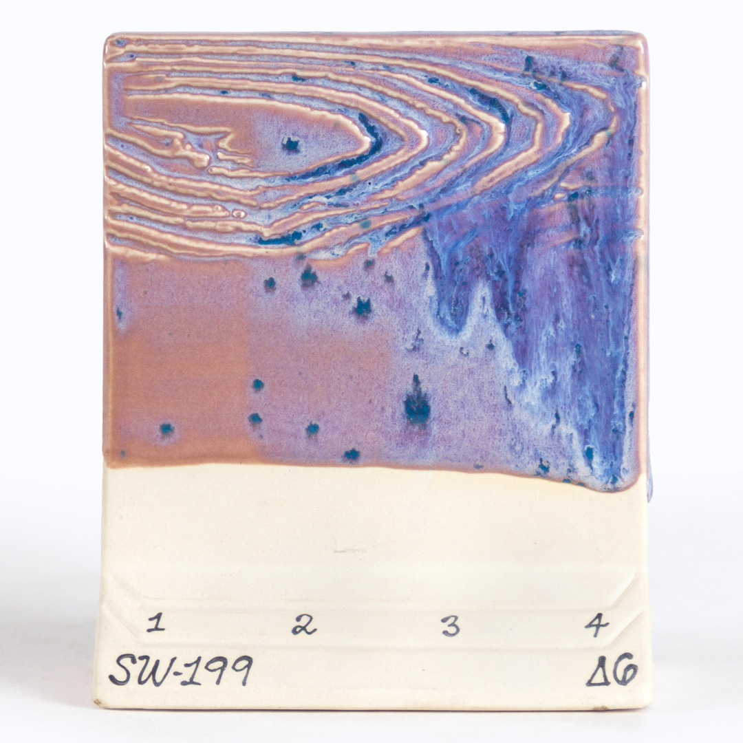 TIP: Purple Aster uses SW165 Lavender Mist as the base glaze. This glaze stable at 3 coats, even with heavy application. Crystals can create movement. Avoid having a heavy concentration of crystals near the bottom of your piece. Can be used in oxidation or reduction firings. Results may vary. The choice of clay body, thickness of application, firing process, and temperature will greatly affect the fired results. Always test your application on your clay body in your kiln environment.