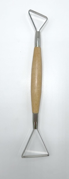 This Ribbon Tool is designed for pottery and sculpture work, these tools have sharpened stainless steel beveled ribbon ends attached to hardwood handles. 23,5 cm. Ribbons are 4,5 x 4,3 cm and 3 x 3 cm.