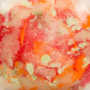 Cone 06 oxidation (1000°C): Sassy Orange is an opaque yellow/orange base glaze with red, green, orange, and yellow crystals.