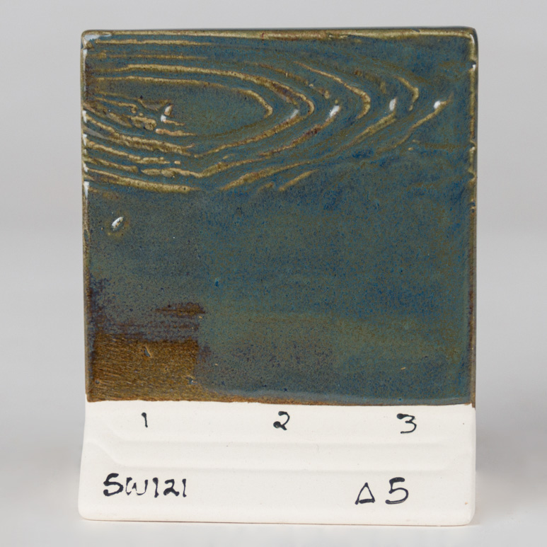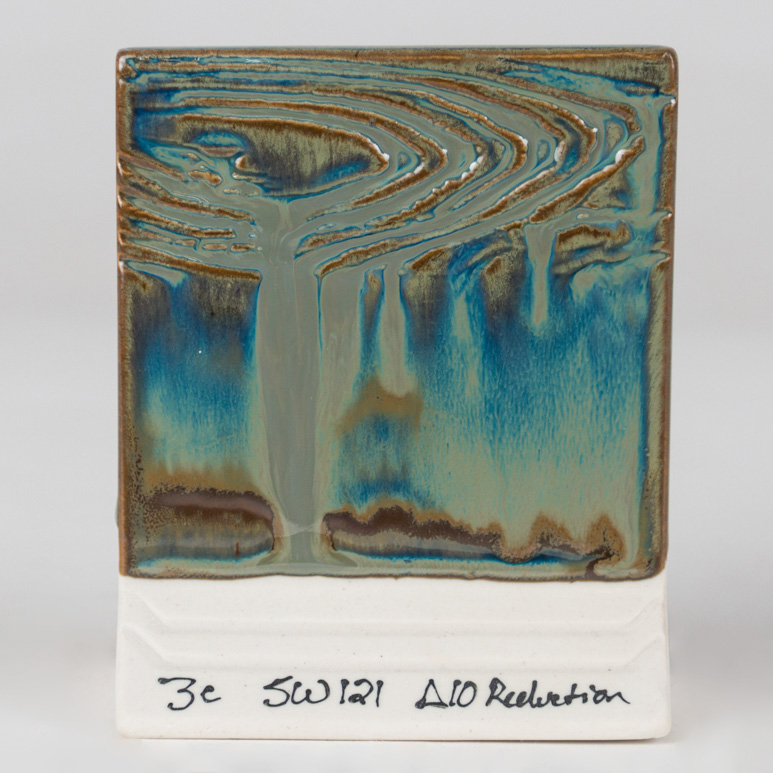 Cone 10 reduction (1280°C): Color changes to a variegated sage green with a glossy finish.