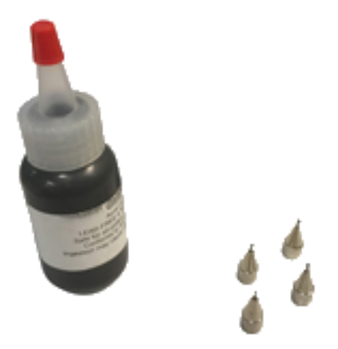 Glaze in the Laguna Underglaze Pen Series. Like our Laguna Glaze/Overglaze Pens, Laguna Underglaze Pens are simple and easy to use. They are easy to clean and difficult to clog. They are refillable and they come with four different metal tip sizes... Extra Fine (0.3mm), Fine (0.5mm), Medium (0.7mm), and Bold (0.9mm). The price of the pen includes one of each of the four different pen tips. Only food safe if a food-safe clear glaze is applied over these underglazes. 27 ml.