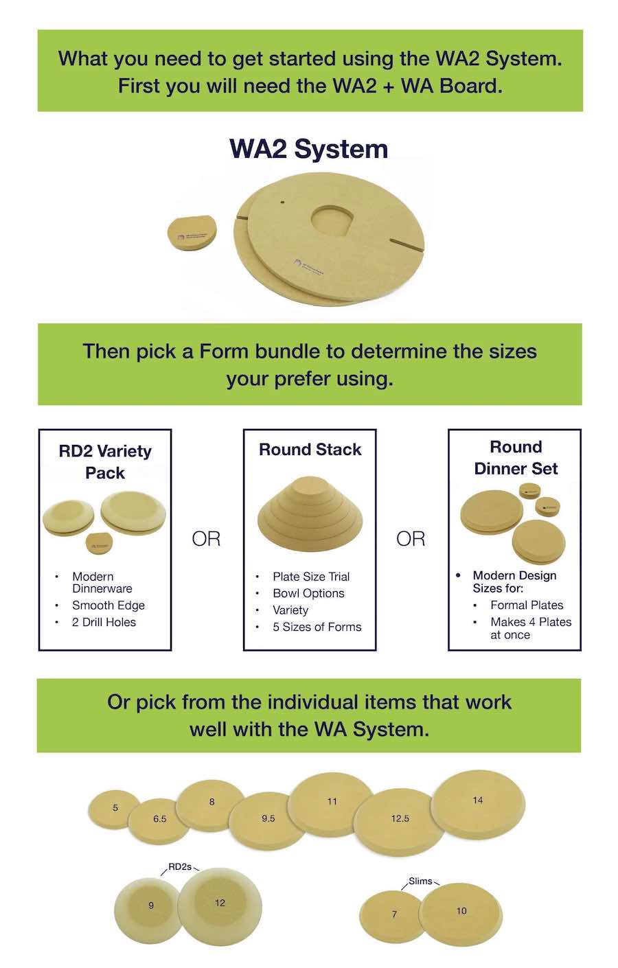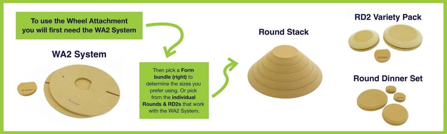 GR Pottery system are wooden molds (1,9 cm) for plates and platters. The WA2 is the master part of this System. It houses all the RD2 Forms with a 2-pin Key system.