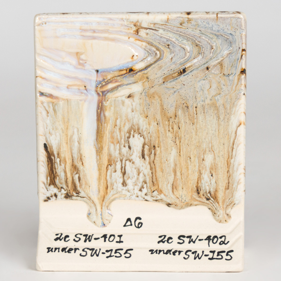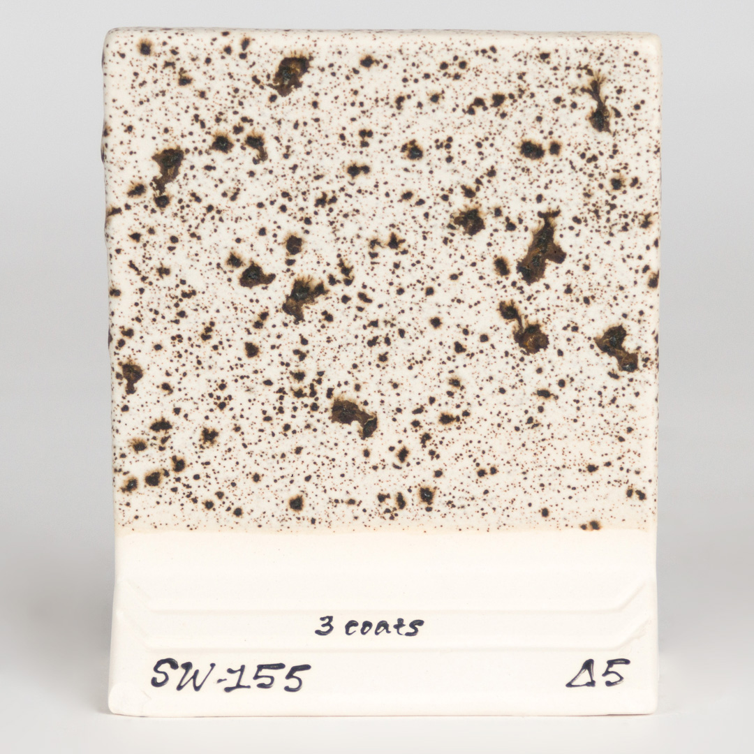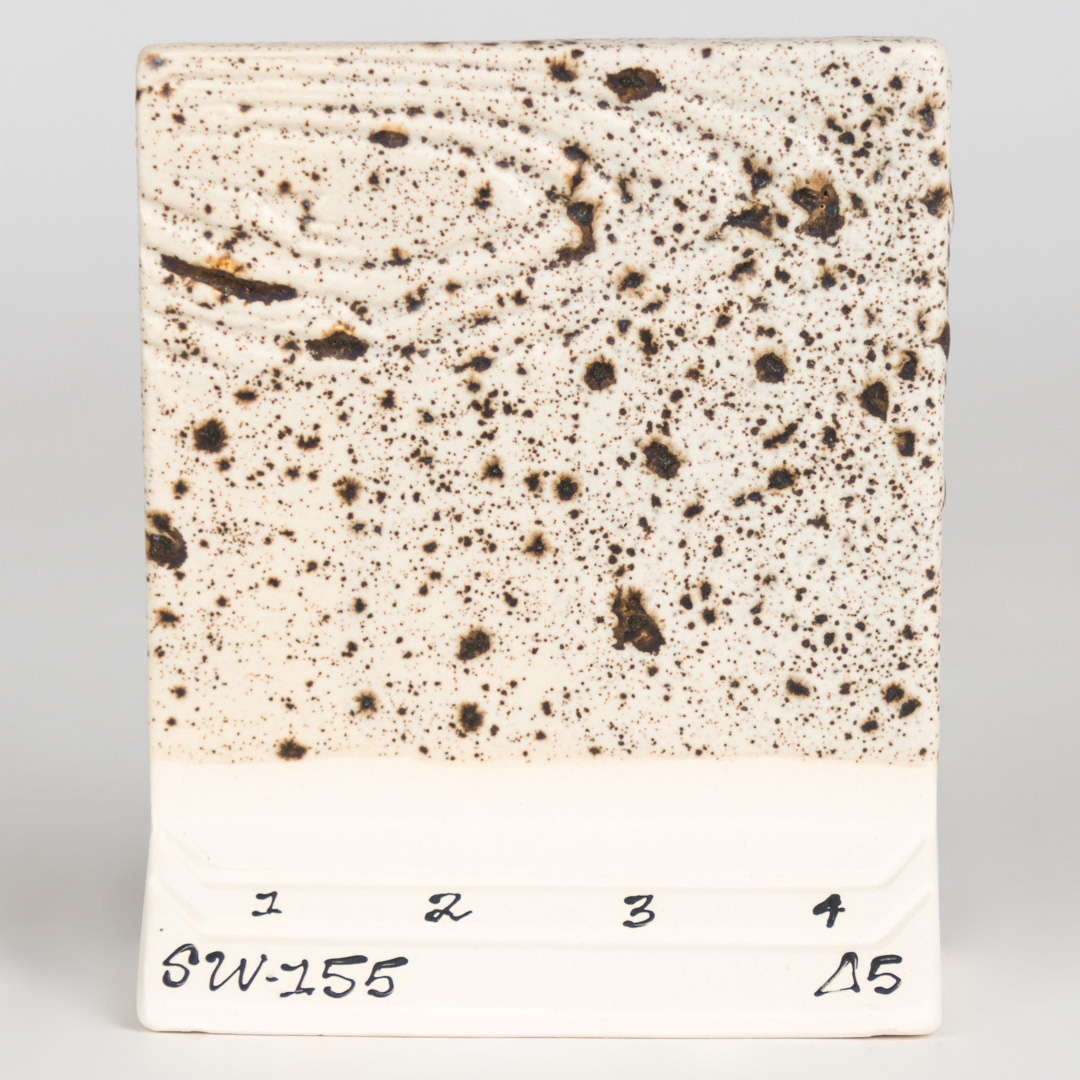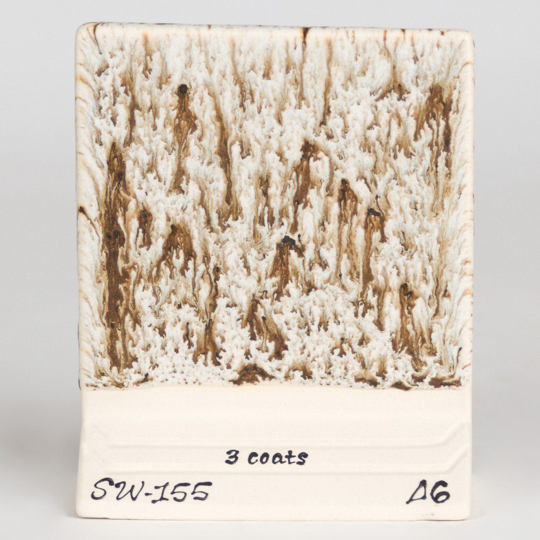 Cone 6 oxidation (1230°C): Winter Wood is a matte white glaze that contains a variety of brown crystals that melt.
