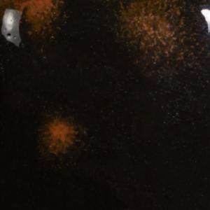 Kägla 06 oxidation (1000°C): Black Opal är en opak svart basglasyr med stora röda kristaller.