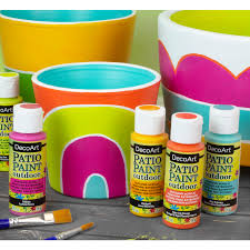 Skapa hållbara utomhusföremål med Patio Paint Outdoor akrylfärger från Deco Art, tillgängliga i över 50 färger! Patio Paint Outdoor är vattenbaserad för enkel rengöring. Den ger utmärkt vidhäftning på ytor utomhus såsom betong, terrakotta, murverk och trä. Denna färg har överlägsen täckförmåga, en satinfinish och är reptålig.