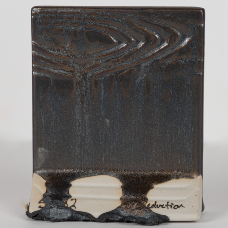 Kägla 6 oxidation (1230°C): Antique Brass är en mjuk matt, metallisk mässingsglasyr som bryts i kolgrått.