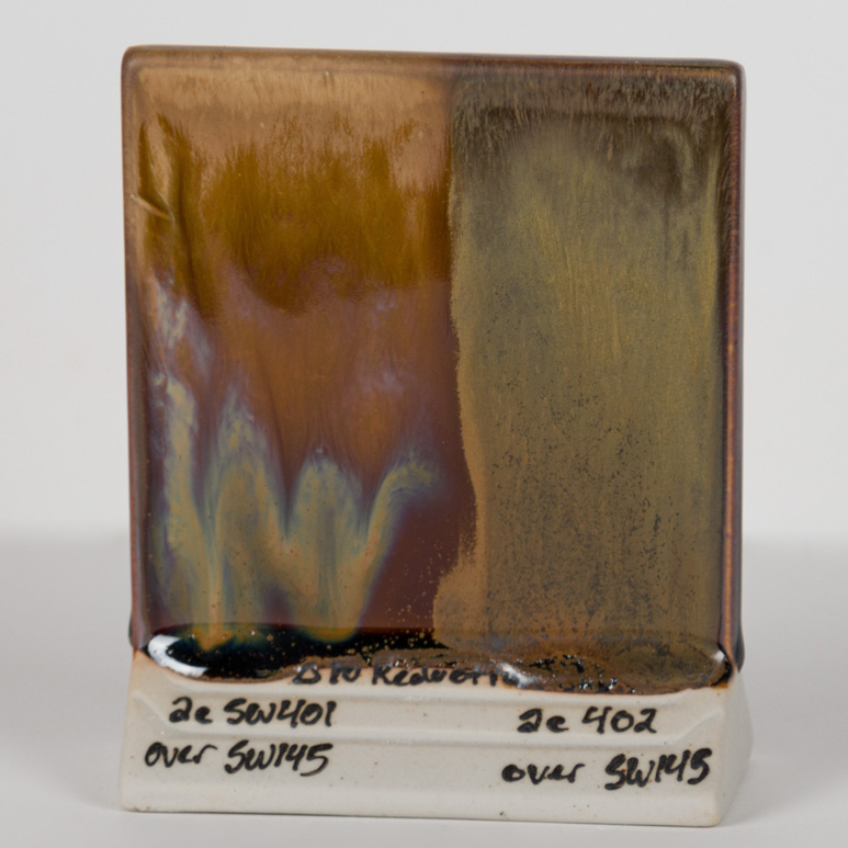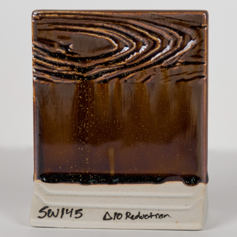 Kägla 6 oxidation (1230°C): Tea Dust är formulerad för att producera en rostfärgad, semi-gloss glasyr som är fläckig med gyllene inslag. Lättare lager ger en semi-transparent rostfärg med få eller inga synliga gyllene fläckar. Använd tre eller fler lager för att skapa en mer framträdande fläckig effekt med glasyren som bryter över textur.