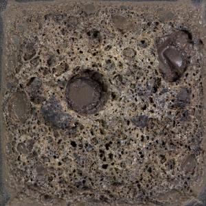 Kägla 6 oxidation (1230°C): Dark Magma är en kolsvart, högtexturerad glasyr som skapar en grov, kraterliknande yta. Ju tjockare applicering, desto mer texturerad blir ytan.