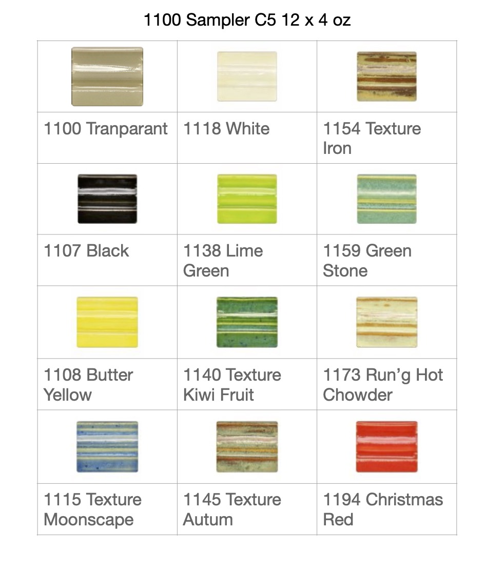 Setet innehåller 1100 series stoneware glazes C5 12 x 4 oz (118ml):