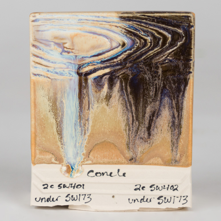 Kägla 6 oxidering (1230°C): Amber Quartz är en varm bärnstensfärgad matt glasyr som ger accenter av brunt och brons. Variationerna i glasyren beror på appliceringen. Ju tjockare applicering, desto mer homogen blir färgen. Glasyren blir genomskinlig där den är tunnare och mörkare runt ytfunktioner.