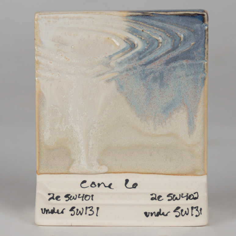 Kägla 6 oxidation (1230°C): Birch är en krämig, ogenomskinlig off-white glasyr som bryts mot brunt.