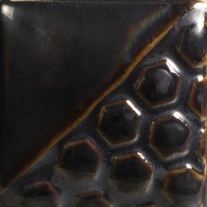 Kägla 06 (1000°C) oxidation: Black Ice är en glansig, metallisk svart glasyr. Inte lämplig för servis (inte livsmedelssäker).