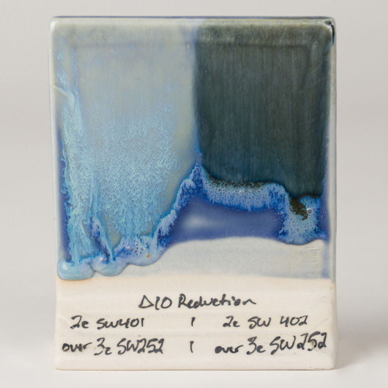 Kägla 10 reduktion (1280°C): Blir mer genomskinlig. Kan producera röd fläckning i en kraftig reduktion.